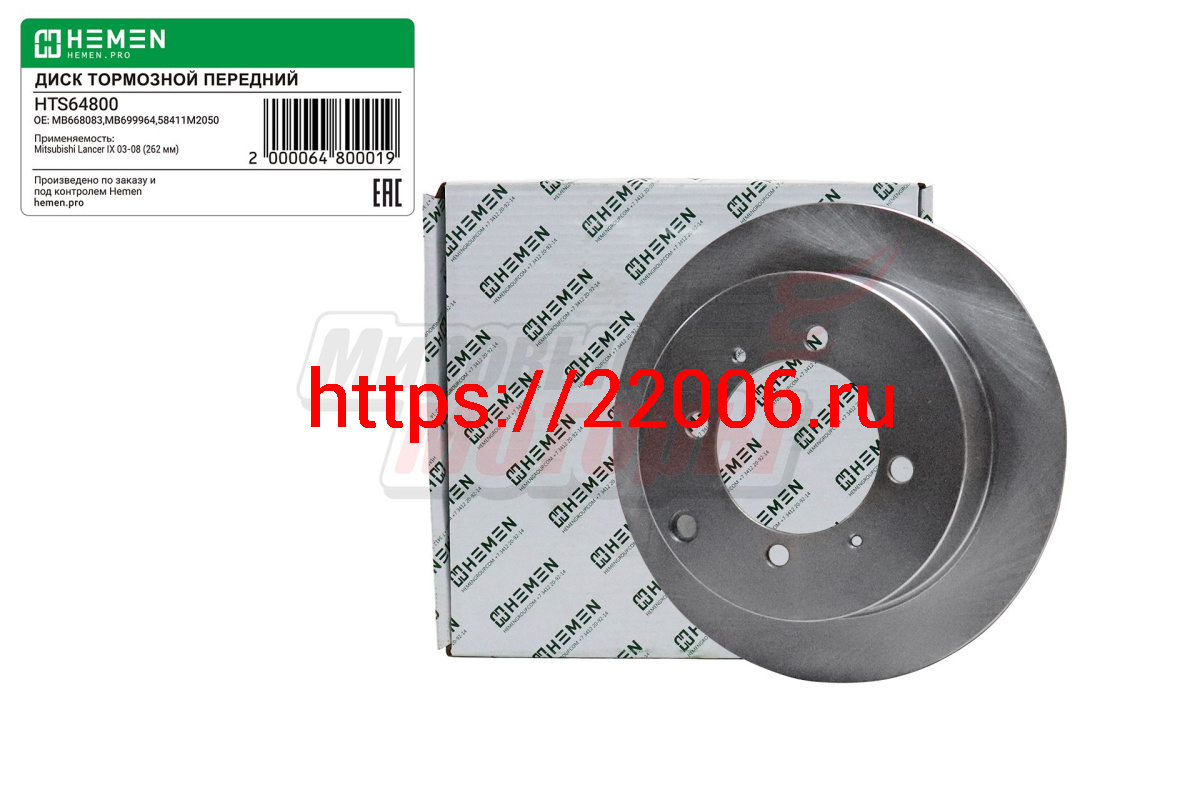 - Диск тормозной задний Mitsubishi Lancer IX 03-08, диам. 262 (HTS64800) в Туринске недорого