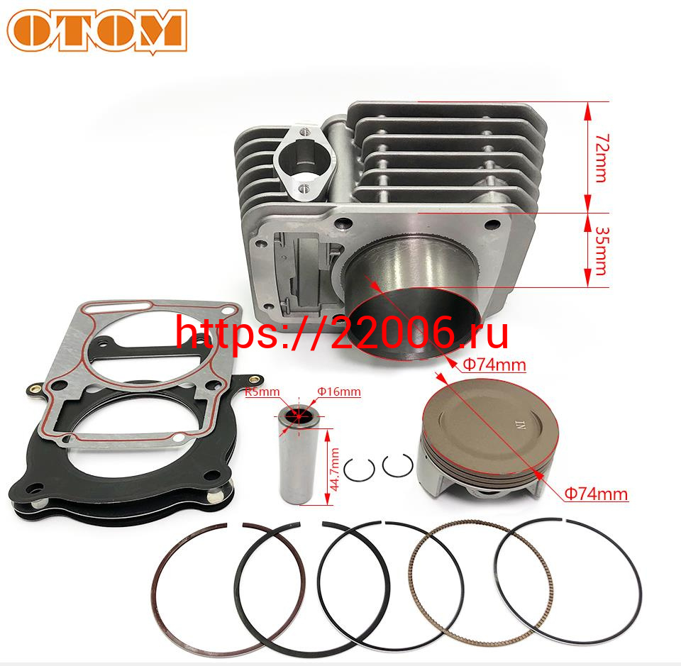 - Цилиндр в сборе с поршнем ZS172FMM-3A, 74мм, тюнинг ZS174FMM (CB250-F) (big bore) OTM в Туринске недорого