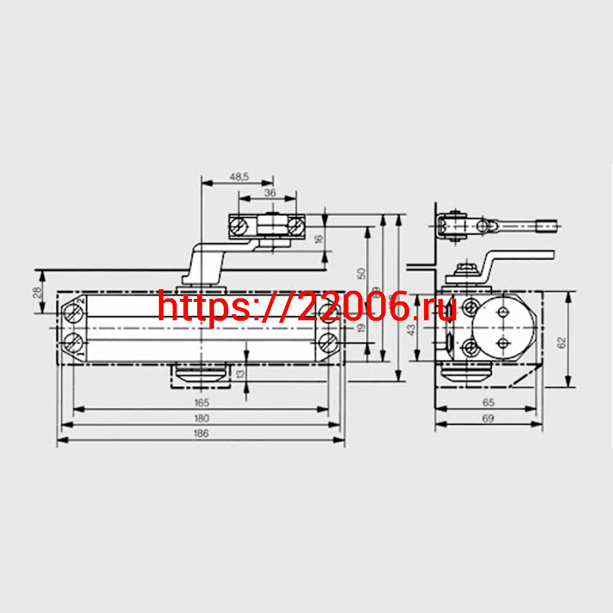 - Доводчик Dorma (Дорма) дверной TS 77 EN 2, с рычажной тягой, серый в Туринске недорого