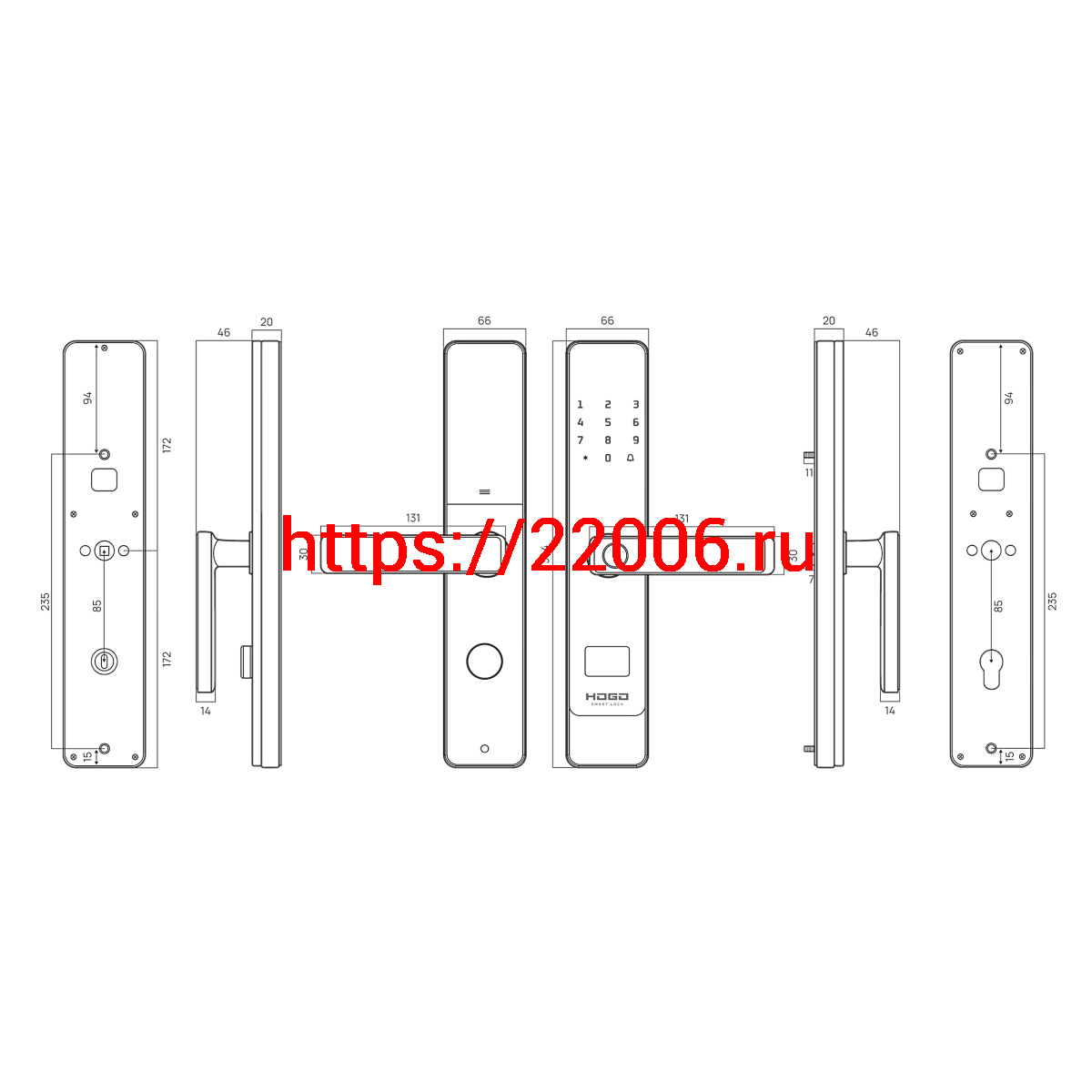- Замок врезной электронный к с ручкой Hogo P02 полуавтомат с отпечатком пальца, черный в Туринске недорого