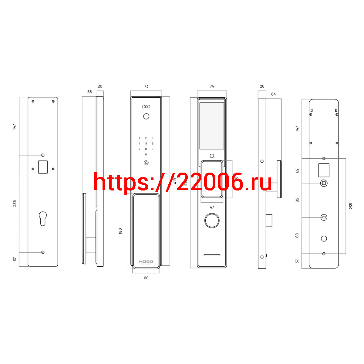 - Замок врезной электронный Hogo V07 с распознаванием лица, черный в Туринске недорого