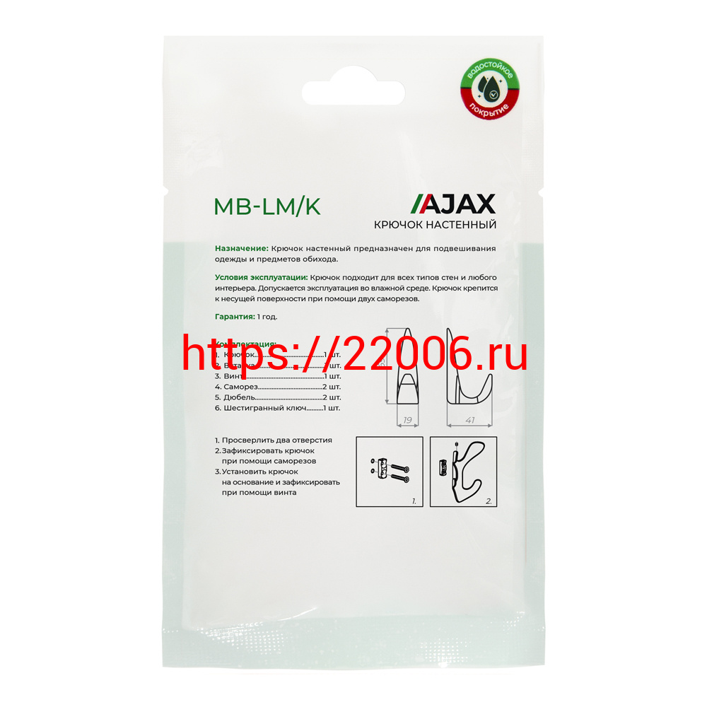 - Крючок Ajax (Аякс) настенный MB-LM/K-002 GP золото в Туринске недорого