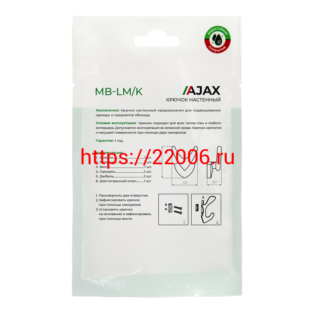 - Крючок Ajax (Аякс) настенный MB-LM/K-003 SN матовый никель в Туринске недорого