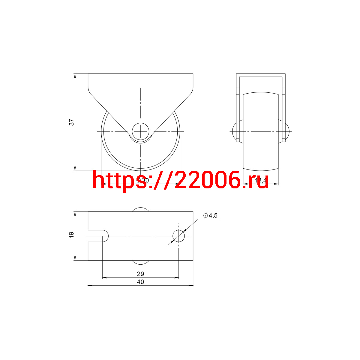 - Опора Ajax (Аякс) колесная прямоходная WL/R-30P/20 kg BL пластик черный в Туринске недорого