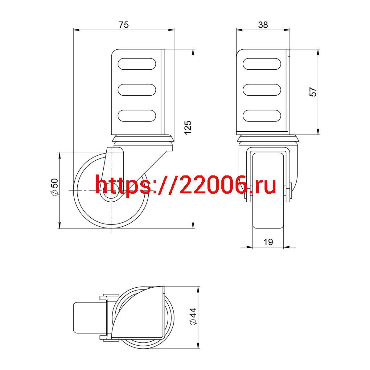 - Опора Ajax (Аякс) колесная WL/B-50R/40kg резина, под винт М8 в Туринске недорого