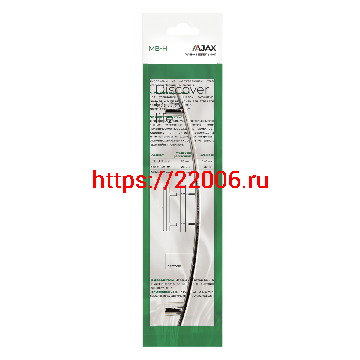 - Ручка-скоба Ajax (Аякс) мебельная MB-H-003-128 мм CP хром в Туринске недорого