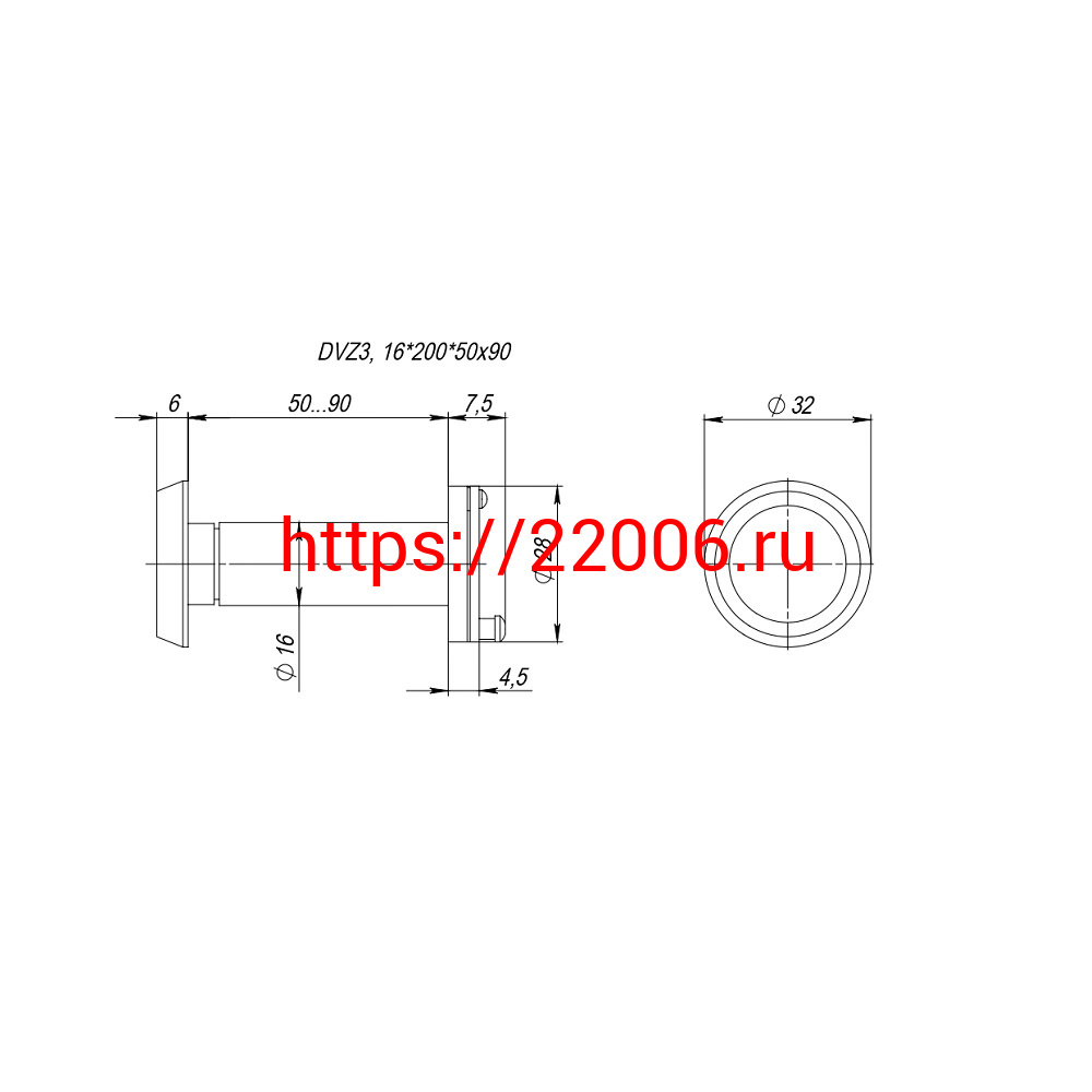 - Глазок Fuaro (Фуаро) дверной, оптика пластик DV-LUX 3/90-50/Z (VIEWER 3 DVZ_LUX) CP хром в Туринске недорого