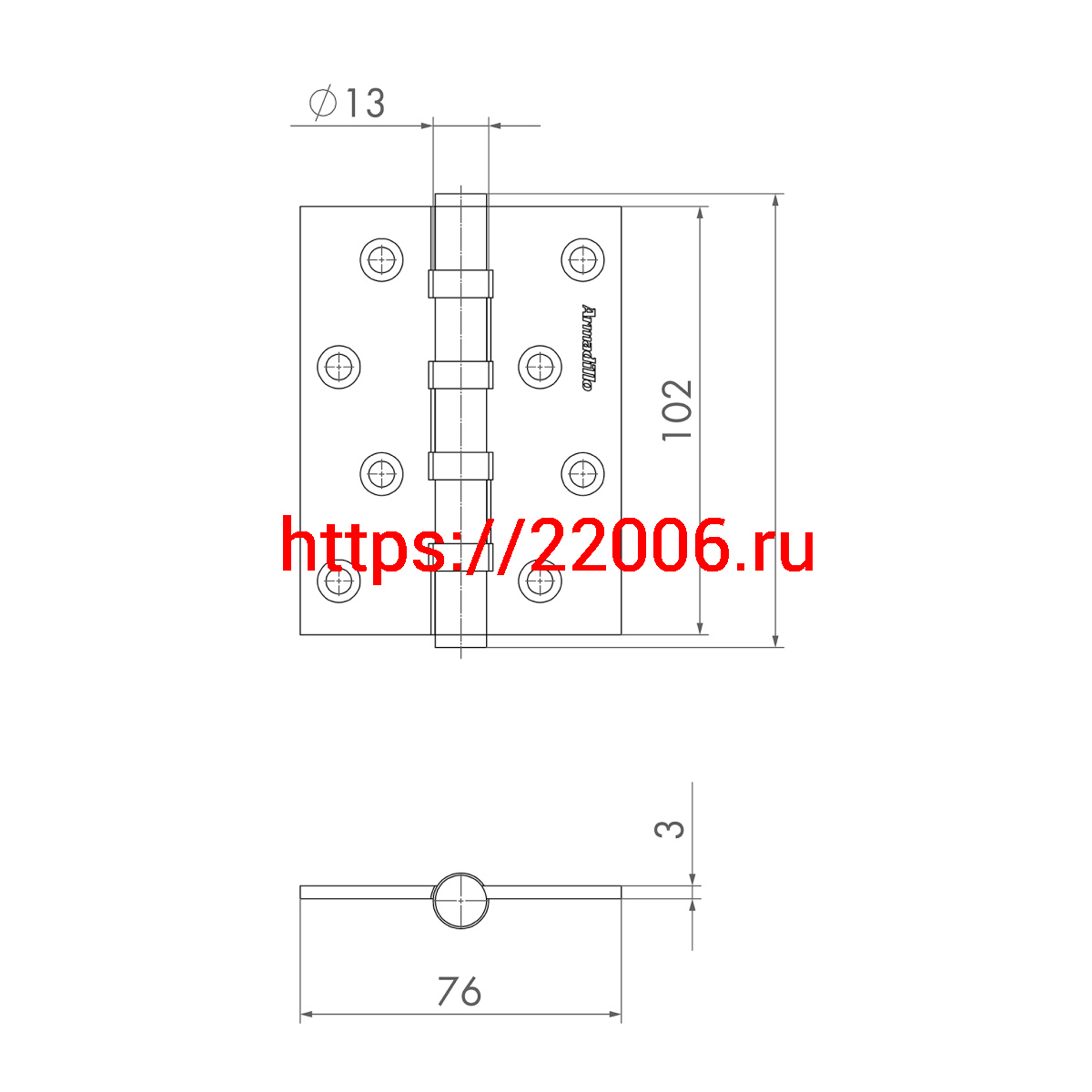 - Петля Armadillo (Армадилло) универсальная IN4500UC-BL FSG 102x75x3 INOX304 флорентийское золото БЛИСТЕР в Туринске недорого