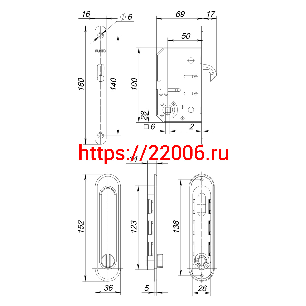 - Защелка Punto (Пунто) с ручками для раздвижных дверей SH.SL152.KIT011-BK (Soft LINE SL-011) SN-3 матовый никель в Туринске недорого