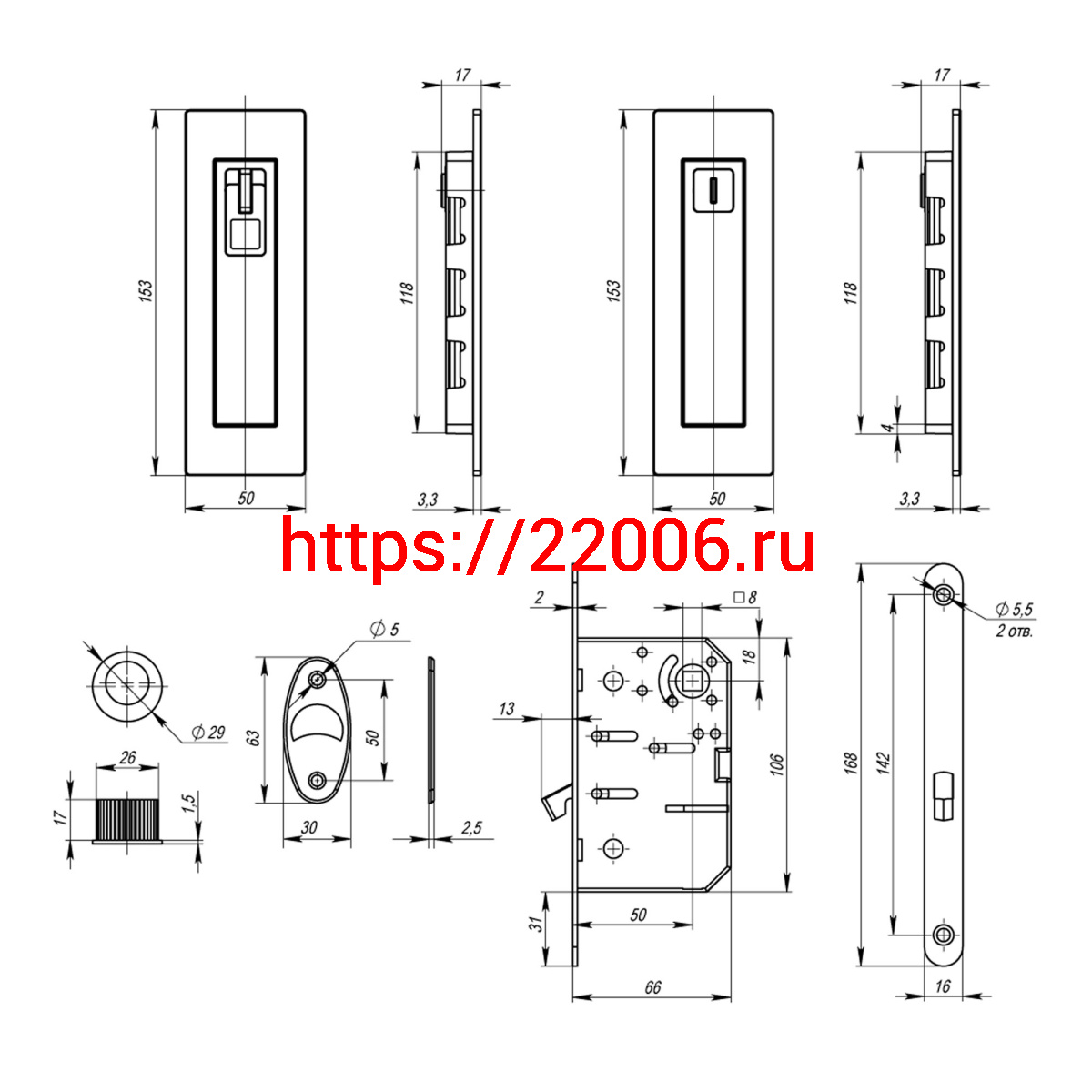 - Защелка Armadillo (Армадилло) с ручками для раздвижных дверей SH.URB153.KIT011-BK (SH011 URB) BL-26 черный в Туринске недорого