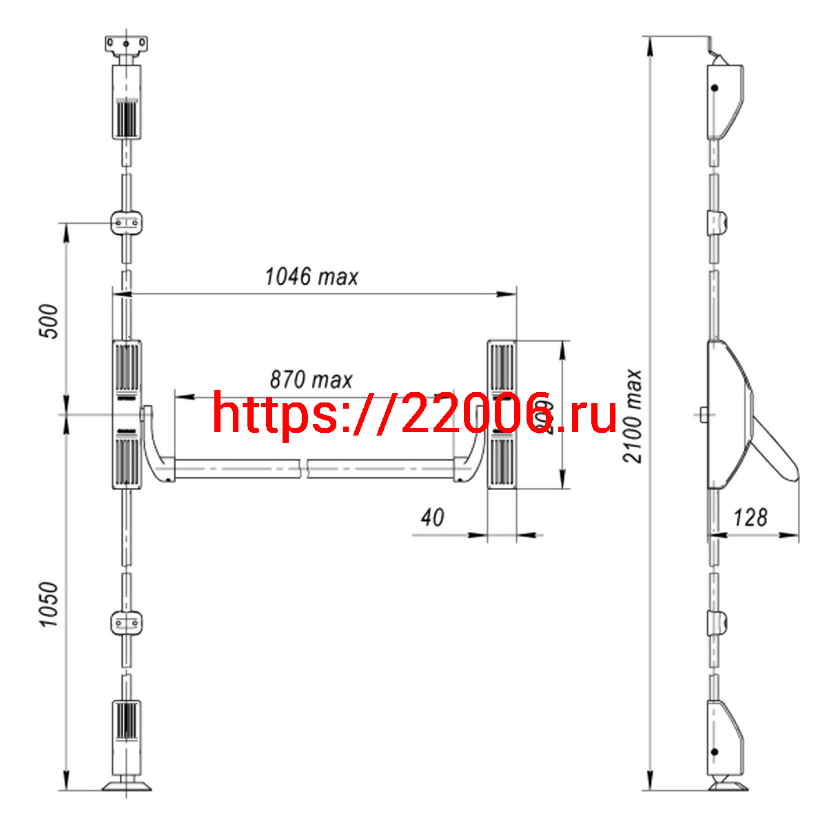 - Ручка-штанга Fuaro (Фуаро) нажимная AP.1700C push-bar (ANTI-PANIC 1700С) с тягами для двухстворчатых дверей в Туринске недорого