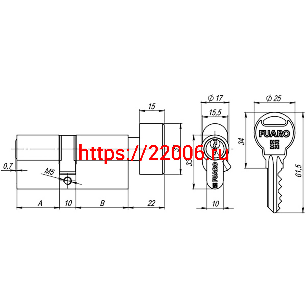 - Цилиндровый Fuaro (Фуаро) механизм (R302/60) R3002Knob60(25+10+25) CP хром 5Key с вертушкой в Туринске недорого