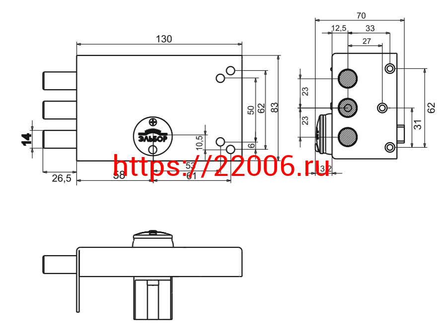 - Замок Elbor (Эльбор) накладной Лазурит 1.02.51.КМА никель, сув., 3 риг., зап. коробка, медный антик /40062/ в Туринске недорого