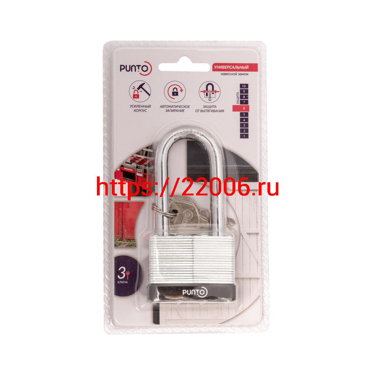 - Замок Punto (Пунто) навесной PK-6550L 3 key англ. длиная дужка в Туринске недорого