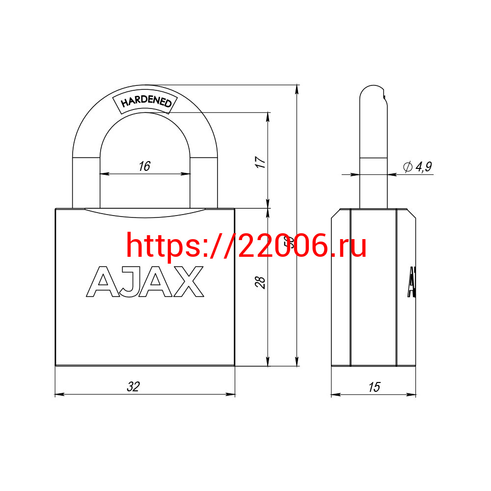 - Замок Ajax (Аякс) навесной PD-0132 (PD-01-32) 3 key англ. в Туринске недорого