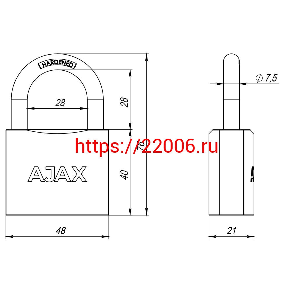 - Замок Ajax (Аякс) навесной PD-0150 (PD-01-50) 3 key англ. в Туринске недорого