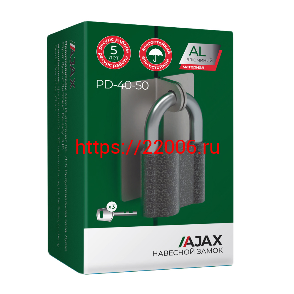 - Замок Ajax (Аякс) навесной PD-4050 (PD-40-50) 3 fin key /коробка в Туринске недорого