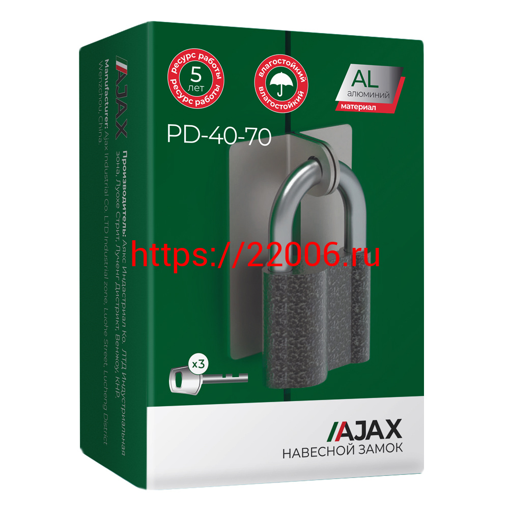 - Замок Ajax (Аякс) навесной PD-4070 (PD-40-70) 3 fin key /коробка в Туринске недорого