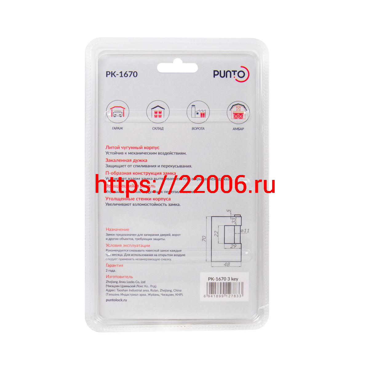 - Замок Punto (Пунто) навесной PK-1670 3 key англ. в Туринске недорого