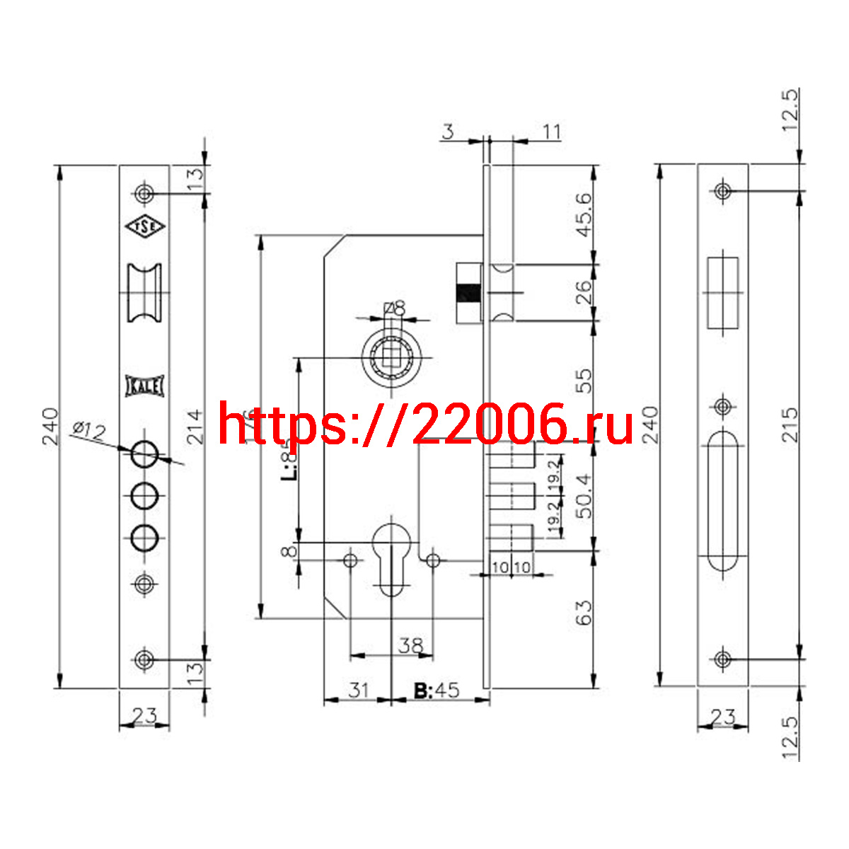 - Корпус Kale kilit (Кале килит) врезного замка с защёлкой 152/3MR (45 mm) w/b (латунь) в Туринске недорого