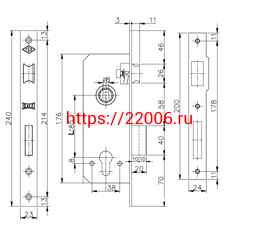 - Корпус Kale kilit (Кале килит) врезного замка с защёлкой 152/R (60 mm) w/b (латунь) в Туринске недорого