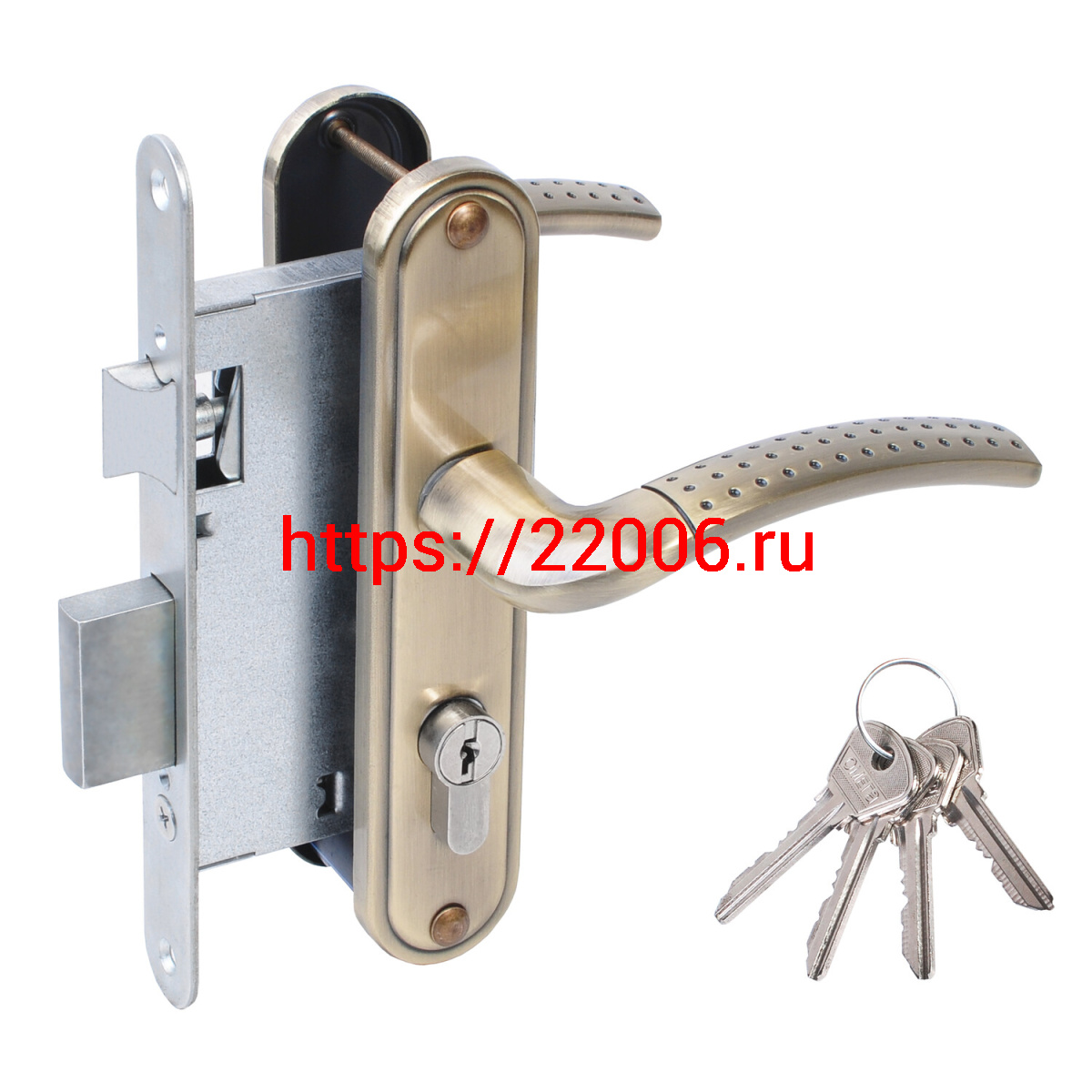 - Замок Omega (Омега) врезной цилиндровый с защёлкой в комплекте с ручкой ЗВ4-55.27 (ант.бронза), 4 кл. в Туринске недорого