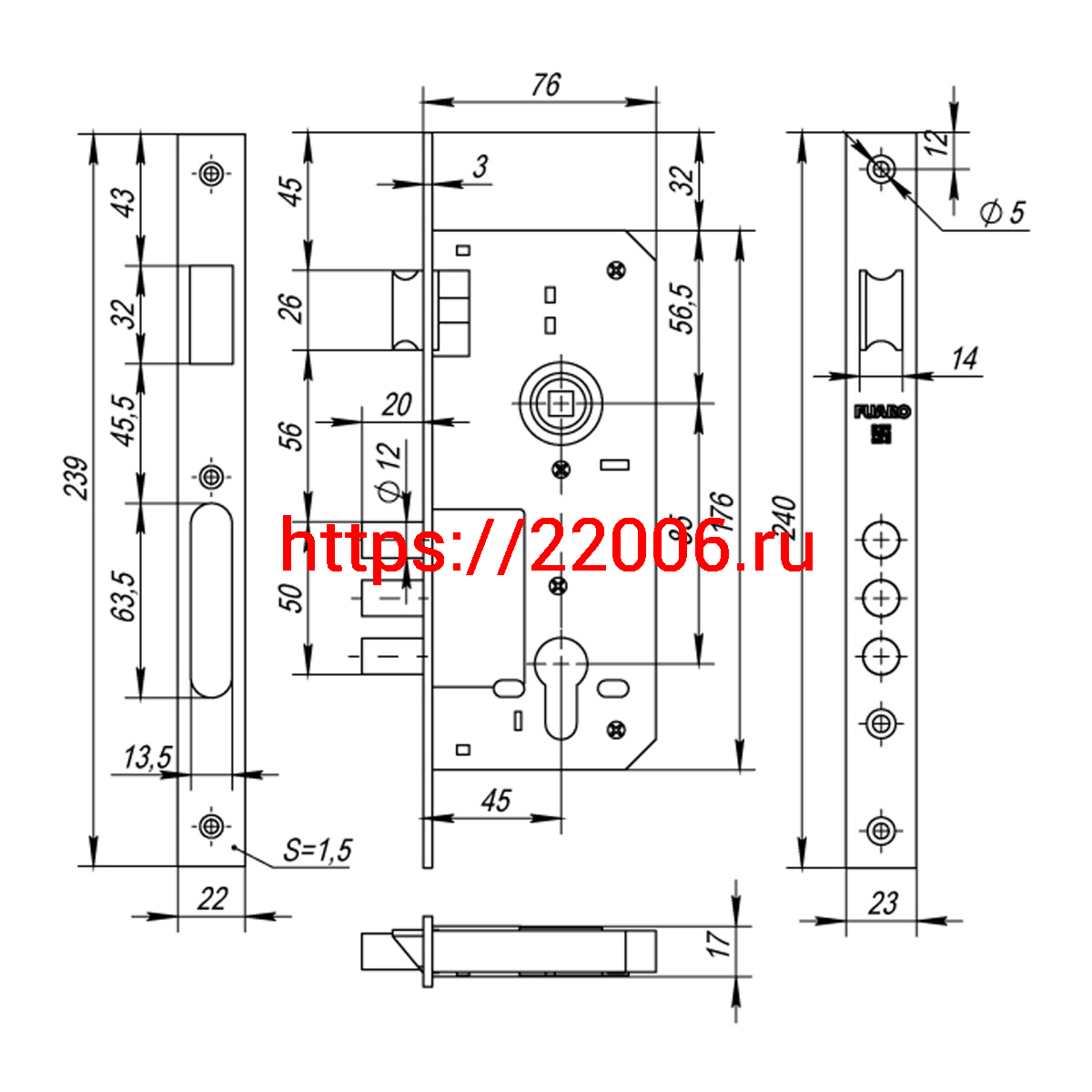 - Корпус Fuaro (Фуаро) врезного замка с защёлкой DD900/C-45.85.3MR (900 3MR W/B) PB латунь в Туринске недорого