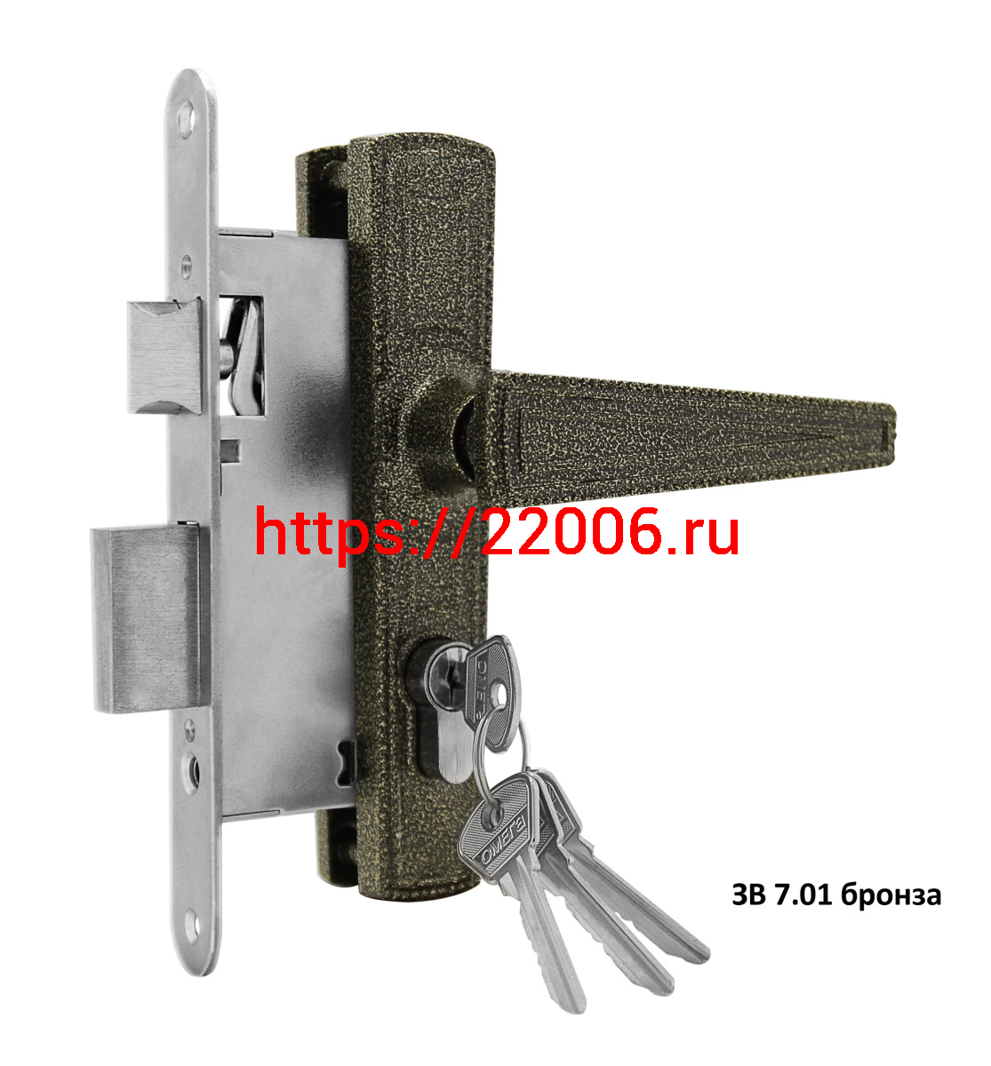 - Замок Omega (Омега) врезной цилиндровый с защёлкой в комплекте с ручкой ЗВ7.01 (бронза), 4 кл. в Туринске недорого