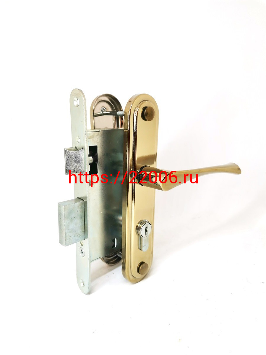 - Замок Omega (Омега) врезной цилиндровый с защёлкой в комплекте с ручкой ЗВ7 (золото лак), 4 кл. в Туринске недорого