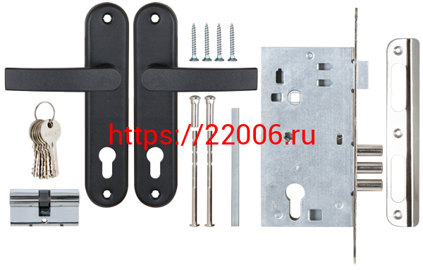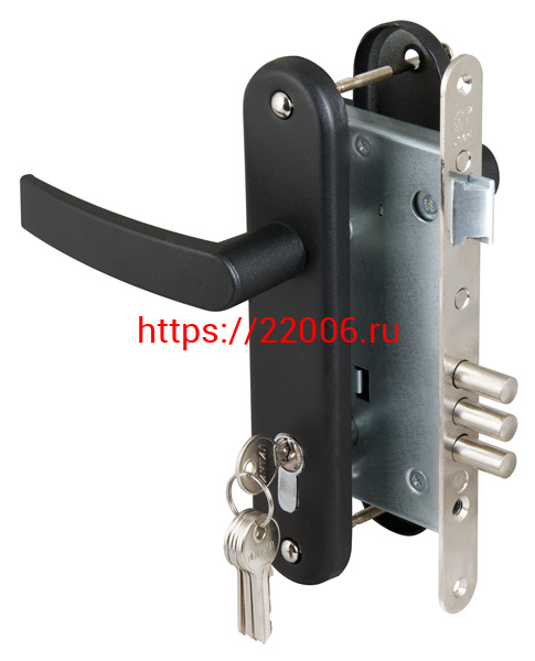- Замок Sam (Сам) врезной цилиндровый с защёлкой в комплекте с ручкой ЗВ4-3 (черный муар), 5 кл. /78401/ в Туринске недорого