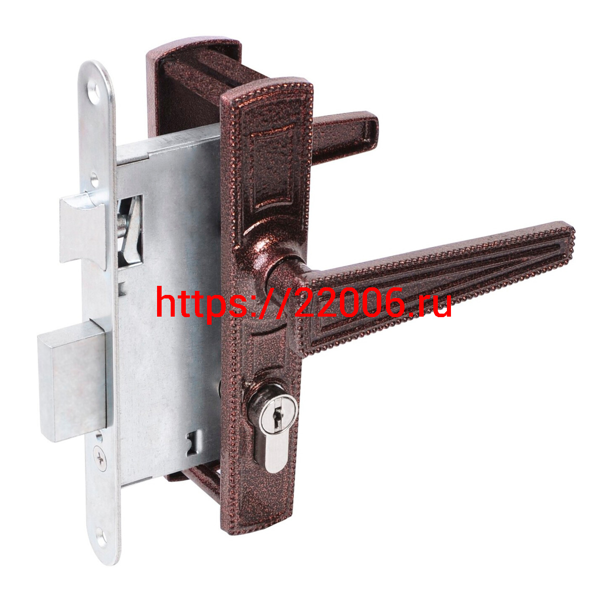 - Замок Absolyute (Абсолют) врезной цилиндровый с защёлкой в комплекте с ручкой ЗВ4-3/01 (медь антик), 4 кл. в Туринске недорого