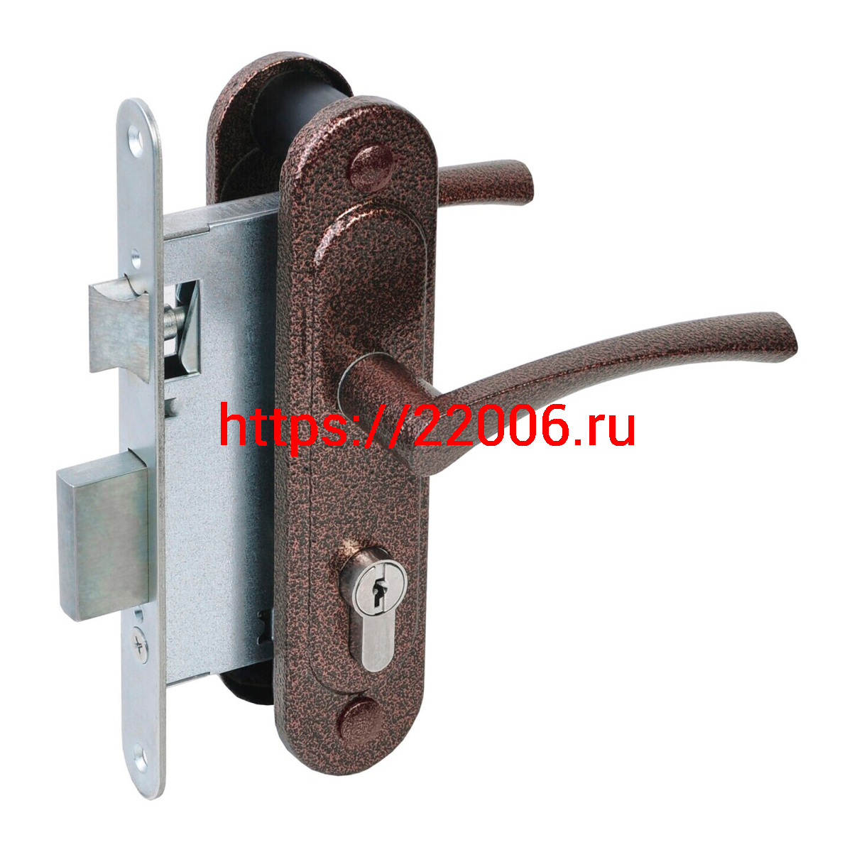 - Замок Absolyute (Абсолют) врезной цилиндровый с защёлкой в комплекте с ручкой ЗВ4-3/07 (медь антик), 4 кл. в Туринске недорого