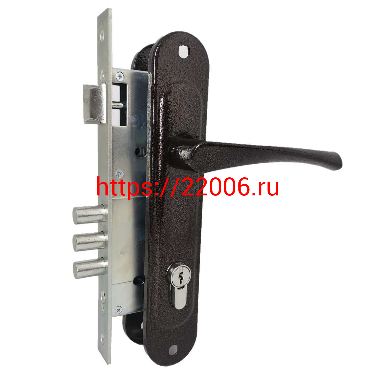 - Замок Absolyute (Абсолют) врезной цилиндровый с защёлкой в комплекте с ручкой ЗВ4-85/07 (медь антик), 4 кл. в Туринске недорого