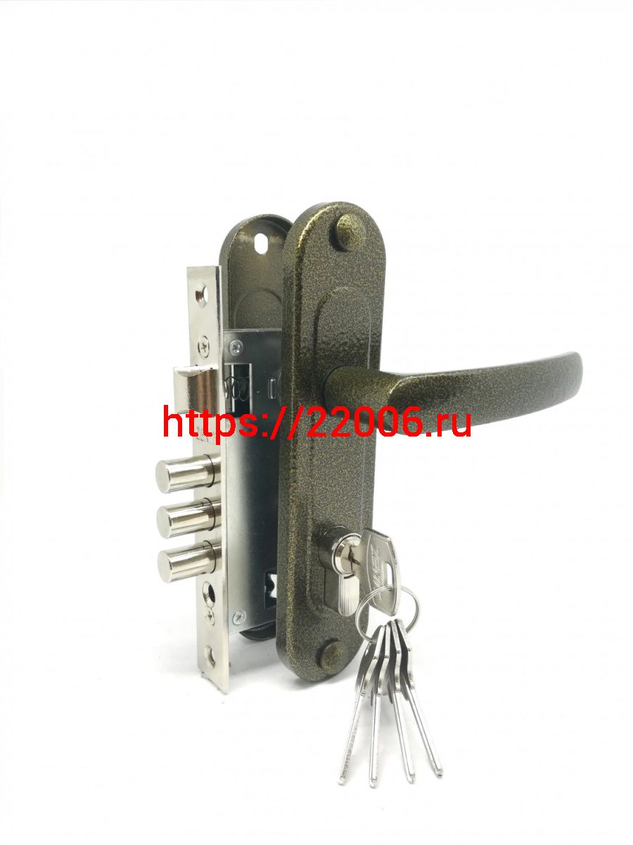 - Замок Zenit (Зенит) врезной цилиндровый с защёлкой в комплекте с ручкой ЗВ7-60.1-02 (бронза), 5 кл. в Туринске недорого