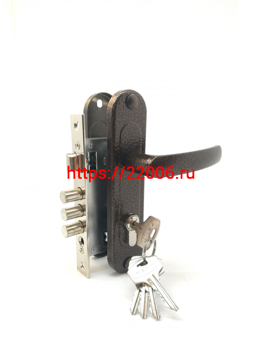 - Замок Zenit (Зенит) врезной цилиндровый с защёлкой в комплекте с ручкой ЗВ7-60.1-02 (медь), 5 кл. в Туринске недорого