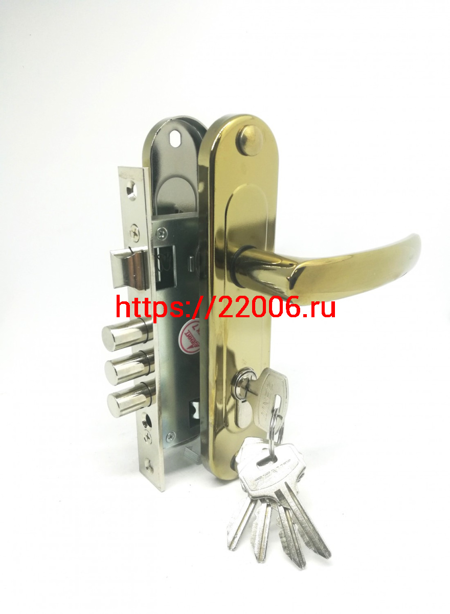 - Замок Zenit (Зенит) врезной цилиндровый с защёлкой в комплекте с ручкой ЗВ7-60.1-02 (золото лак), 5 кл. в Туринске недорого