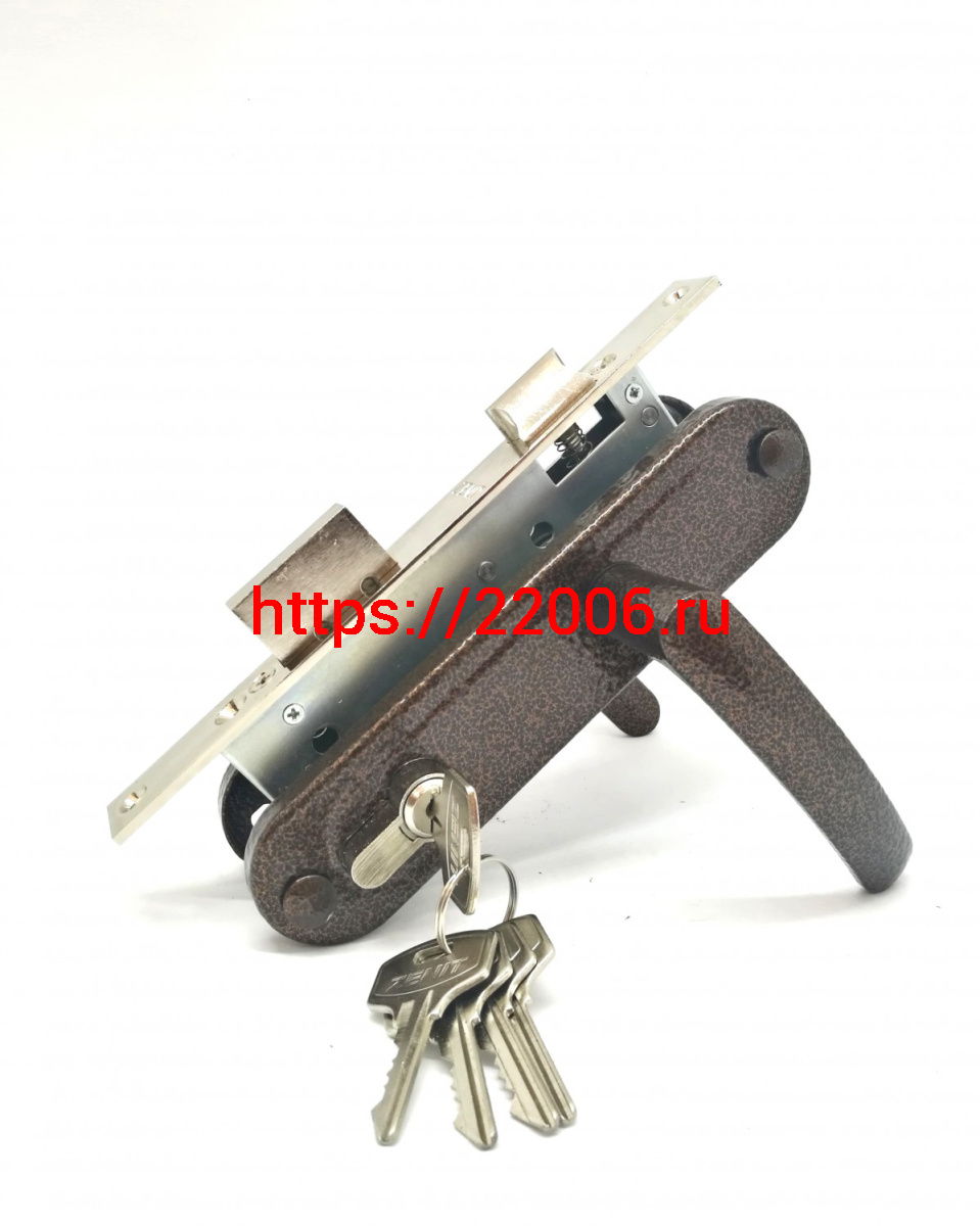 - Замок Zenit (Зенит) врезной цилиндровый с защёлкой в комплекте с ручкой ЗВ7-70.4-02 (медь), 5 кл. в Туринске недорого