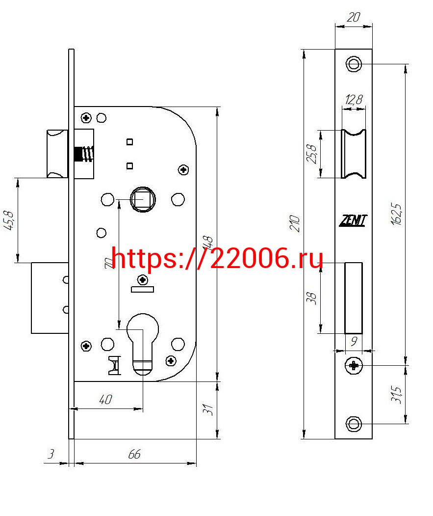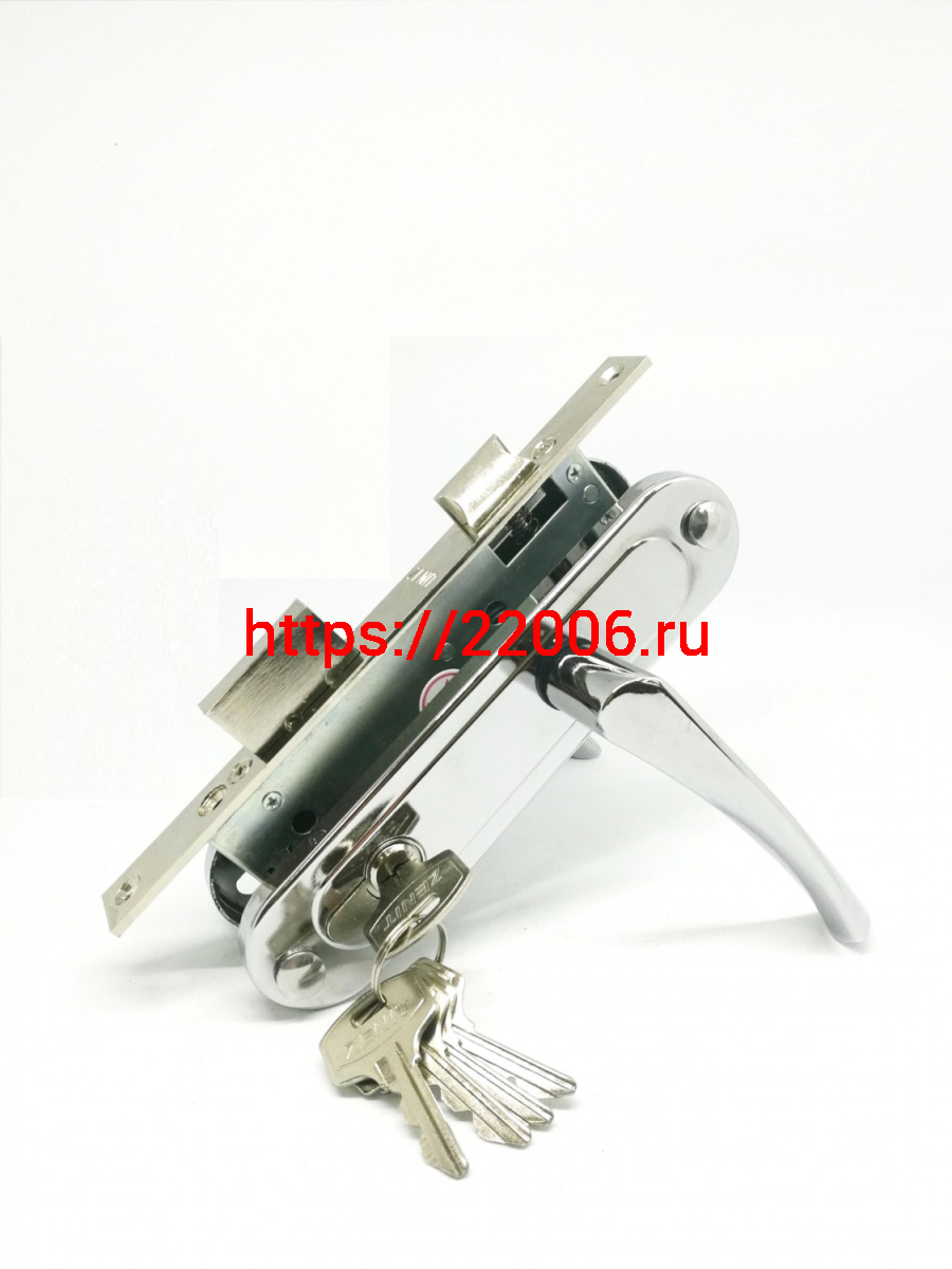 - Замок Zenit (Зенит) врезной цилиндровый с защёлкой в комплекте с ручкой ЗВ7-70.4 (хром), 5 кл. в Туринске недорого