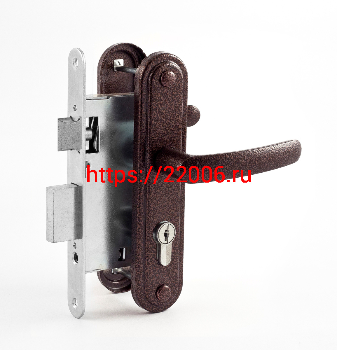 - Замок Omega (Омега) врезной цилиндровый с защёлкой в комплекте с ручкой ЗВ7.02 (медь), 4 кл. в Туринске недорого