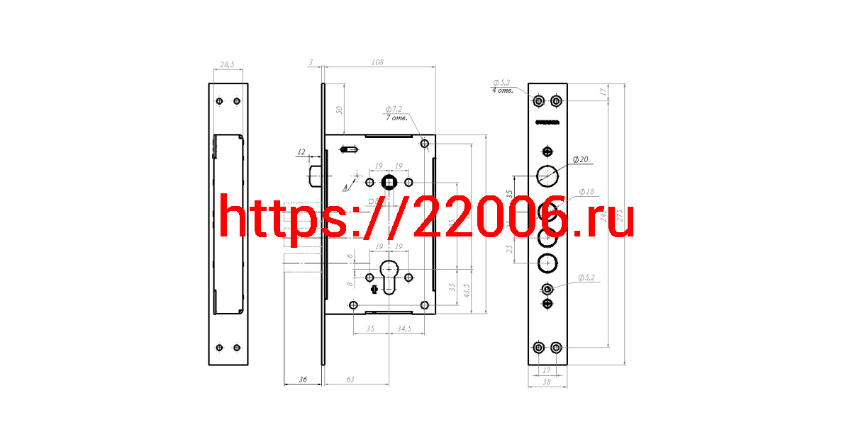- Корпус Guardian (Гардиан) врезного замка с защёлкой ЗВ 22.11 Т /128:5363/ в Туринске недорого