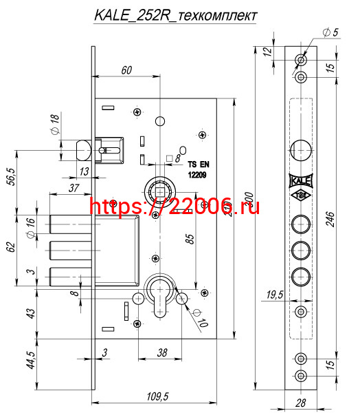 - Корпус Kale kilit (Кале килит) врезного цилиндрового замка с защёлкой 252/R w/b (тех. комплектация) в Туринске недорого