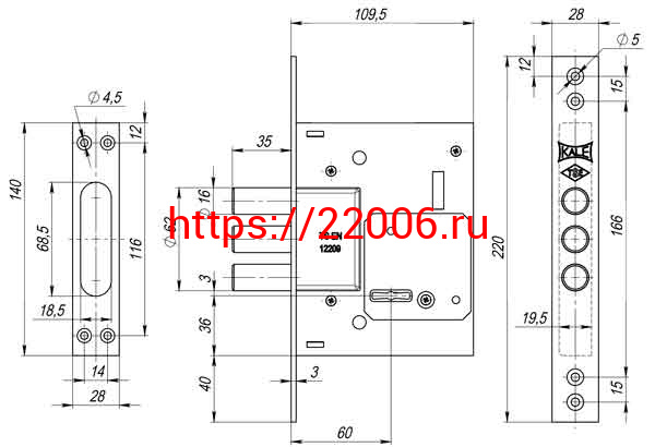 - Замок Kale kilit (Кале килит) врезной сувальдный 257/L (тех. упаковка), 5 кл. (кл. 40 мм) в Туринске недорого