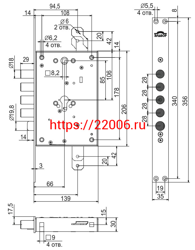 - Корпус Elbor (Эльбор) врезного замка с защёлкой Рубин 1.08.21 с тягами /56152/ в Туринске недорого