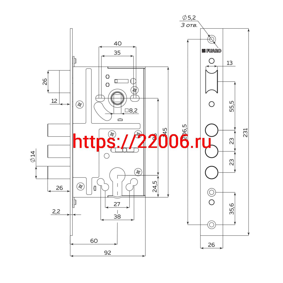 - Корпус Fuaro (Фуаро) врезного замка c защёлкой MDV811/C-60.85.3R14 в Туринске недорого