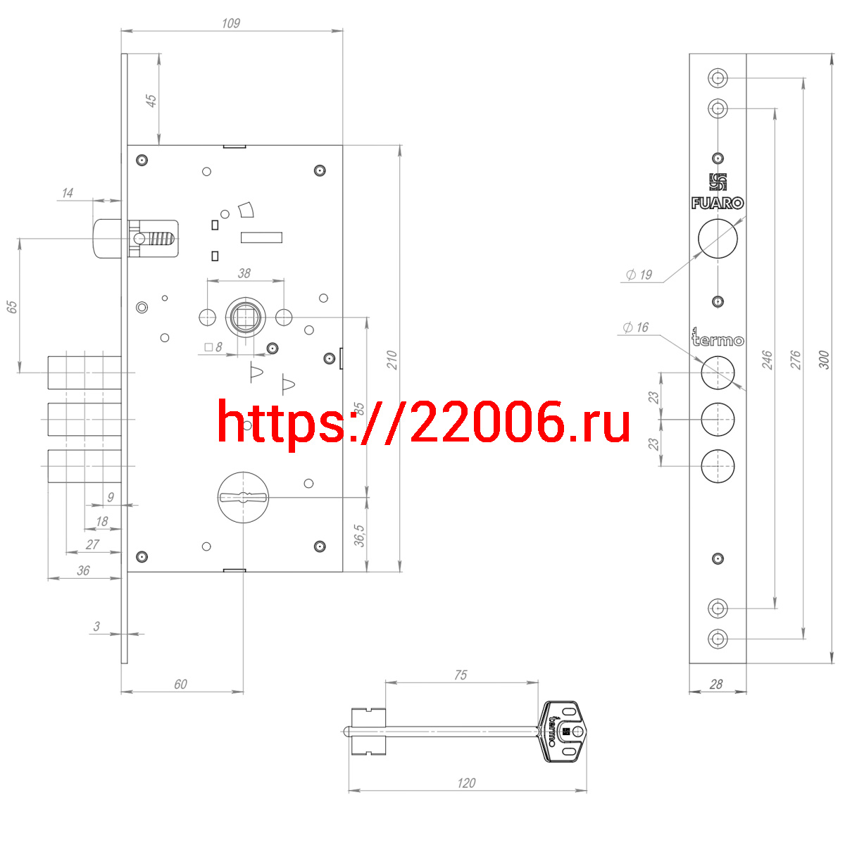 - Замок Fuaro (Фуаро) врезной сувальдный TERMO MDV25/S-60.85.3R16 4 key (ключ удл. 120/75 мм) в Туринске недорого