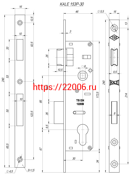 - Корпус Kale kilit (Кале килит) узкопрофильного замка с защёлкой 153/P (30 mm) w/b (хром) в Туринске недорого