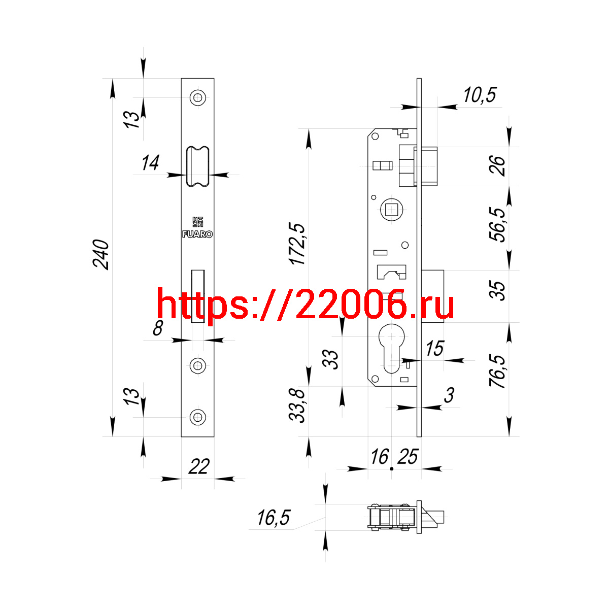 - Корпус Fuaro (Фуаро) узкопрофильного замка с защелкой PROF153-25/85 (153-25/85) CP хром в Туринске недорого