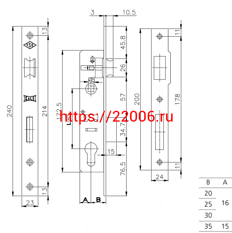 - Корпус Kale kilit (Кале килит) узкопрофильного замка с защёлкой 153 (35 mm) w/b (никель) в Туринске недорого