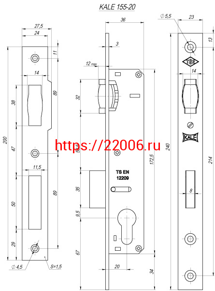 - Замок Kale kilit (Кале килит) врезной цилиндровый узкопроф.155 (20 mm) (никель) 3 кл. в Туринске недорого