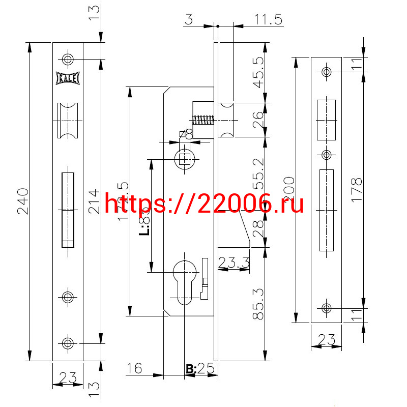 - Корпус Kale kilit (Кале килит) узкопрофильного замка с защёлкой 253 (25 mm) w/b (никель) в Туринске недорого